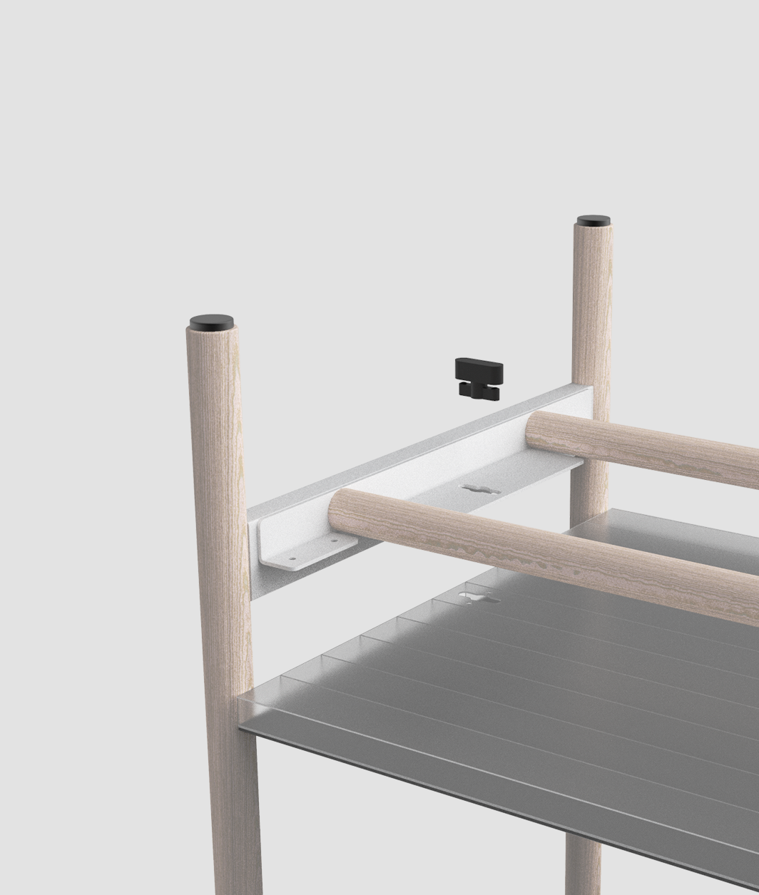 Through an expandable framework construction and the use of hollow chamber panels, Air Shelf emerges as a lightweight and customizable flatpack shelving system that fulfills all the requirements of a shelf system optimized for sustainable e-commerce.