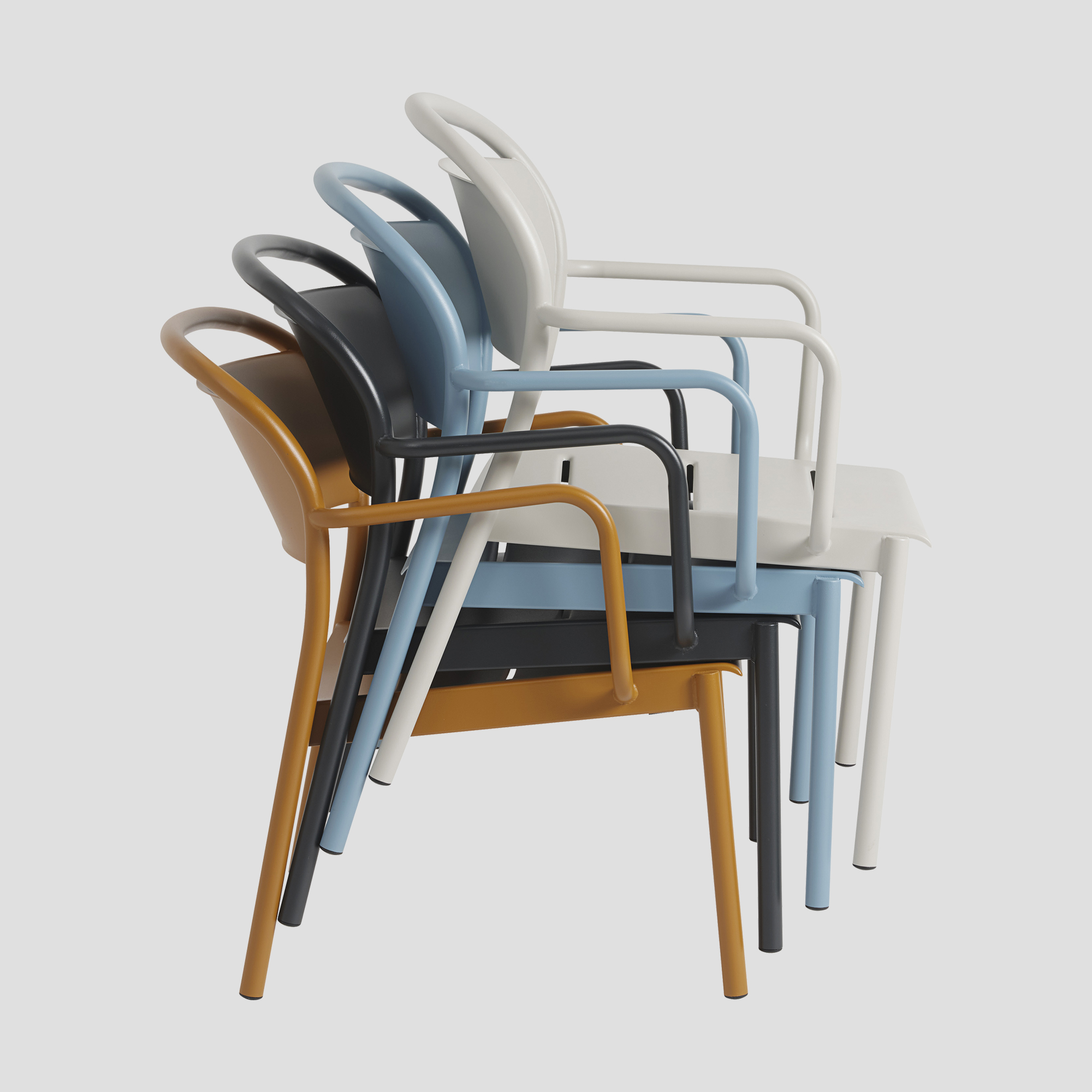the linear steel lounge armchair is designed with clean, elegant lines and subtle details for a modern expression. the outdoor chair unites invitingly organic shapes with extensive comfort and long-lasting quality. it is defined by its contrasts - the clean lines of its seat and front legs in combination with the ergonomic, smoothly curved backrest for an enveloping comfort.