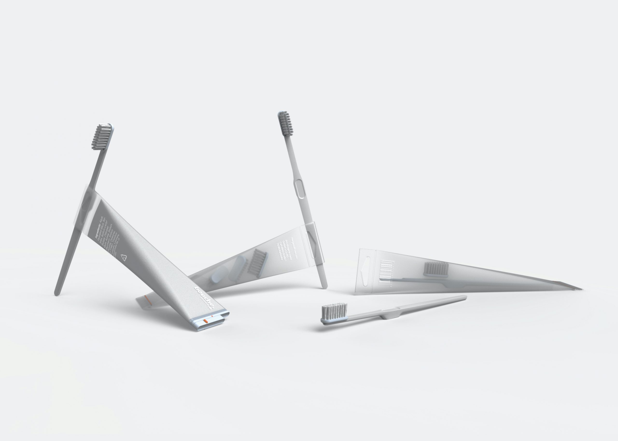 the focus of this project is on the packaging design of dental hygiene products. a toothpaste tube, the packaging of the toothbrush handle and the brush heads were designed. by implementing an exchangeable brushhead system, bouche is the solution for sustainable dental hygiene.