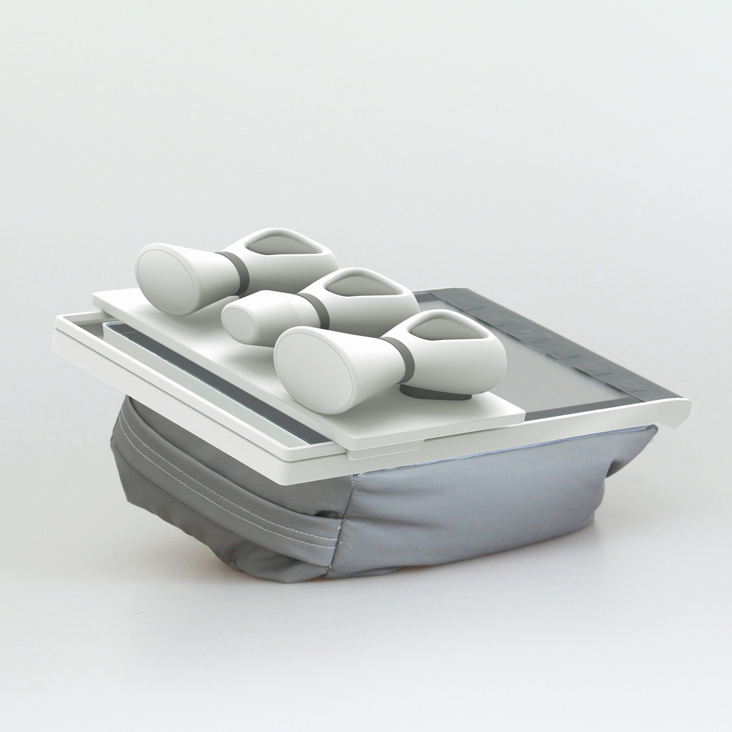 The granules contained in the pillow ensure a stable placement in any angle and on any surface. Hygienic standards are ensured, by using a fabric for the pillow that is easy to sanitize and it even can be separated from the screen.
